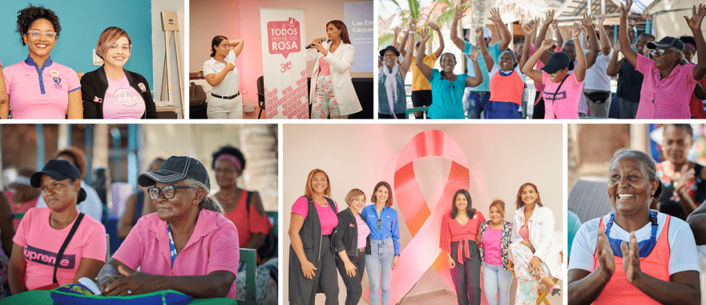 Más de cinco comunidades, incluyendo Friusa, Villa Esperanza, Villa Playwood, Miches, Verón y Mano Juan (en Isla Saona), fueron beneficiadas con jornadas de prevención, control y diagnóstico del cáncer de mama, a la vez que trabajaron el manejo de emociones a cargo de la Dra. Ruth Esther Marte, psicóloga clínica, siendo la salud mental una de las principales afecciones que presentan las personas que padecen esta enfermedad.